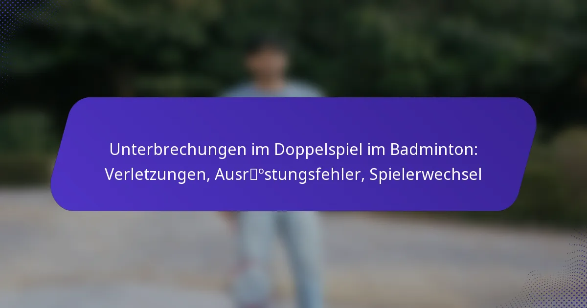Im Doppelbadminton können Unterbrechungen aufgrund von Verletzungen, Ausrüstungsfehlern oder Spielerwechseln auftreten, die jeweils den Spielverlauf und die Strategie beeinflussen. Diese Situationen unterliegen spezifischen Protokollen, die von der Badminton-Weltföderation (BWF) festgelegt wurden und entscheidend für die Aufrechterhaltung des fairen Spiels und die Gewährleistung der Sicherheit der Spieler sind. Das Verständnis dieser Unterbrechungen ist für Spieler und Offizielle gleichermaßen wichtig, um die Komplexität des Spiels effektiv zu navigieren.